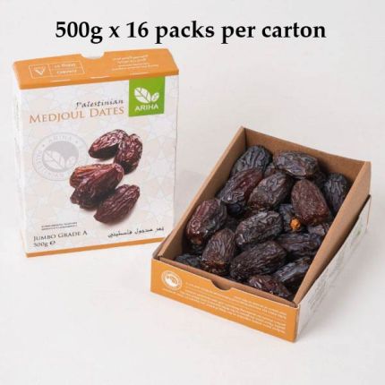 ARIHA’s Medjoul Dates are renowned for their premium quality. Harvested near the historical Palestinian town of Jericho; these dates are some of the highest quality available. We carefully pick our dates and store them in a controlled and cooled environment. Our Medjoul dates have been cultivated on Palestinian land by Palestinian farmers and workers.