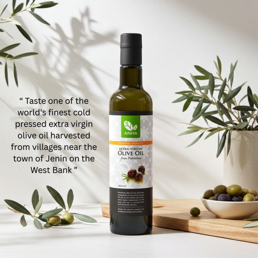 Taste one of the world’s finest extra virgin olive oil harvested from villages near the town of Jenin on the West Bank. This oil is cold-pressed from fresh olives grown traditionally and sourced from local Palestinian farmers.